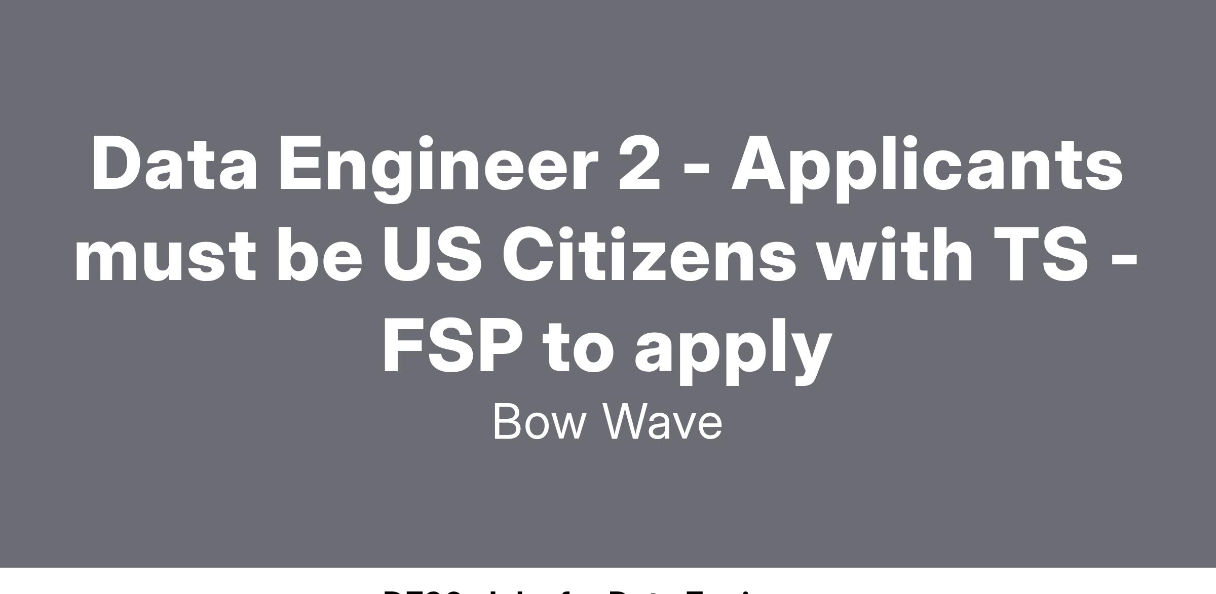 Data Engineer 2 - Applicants must be US Citizens with TS - FSP to apply