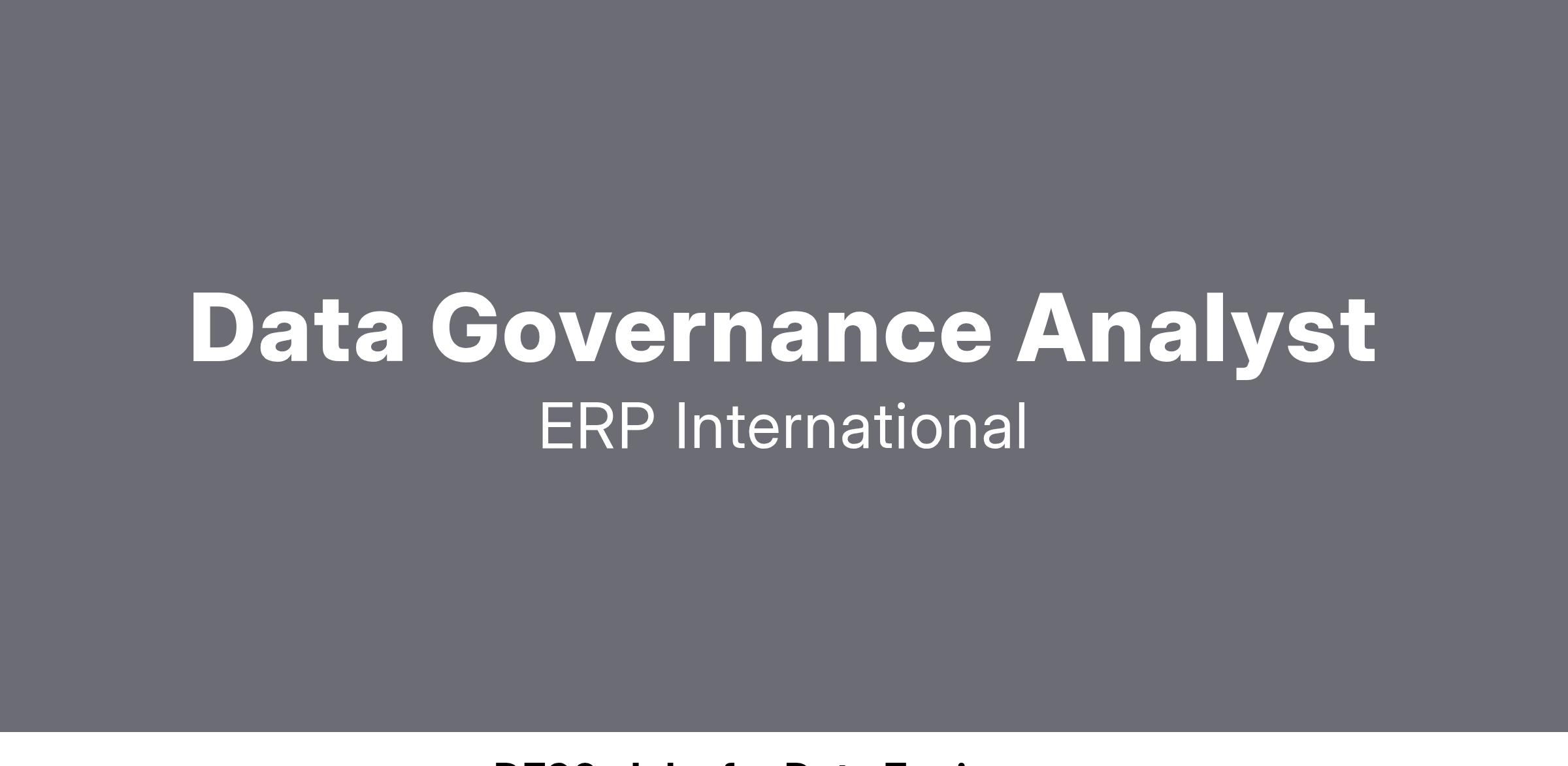 ERP International, LLC (www.erpinternational.com) has an immediate opening for a Data Governance Analyst supporting one of our DoD customers. Ideal candidates must have a strong background in data governance and data analysis.