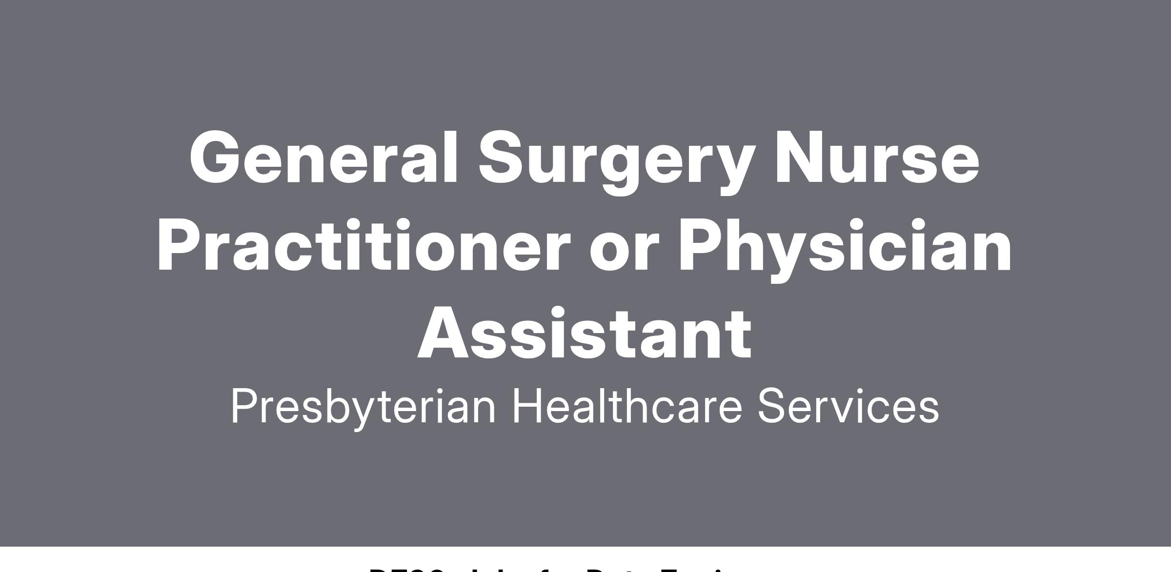 Presbyterian Medical Group seeks a General Surgery APC to join our established practice in Clovis, New Mexico. We're all about well-being, starting with yours. We offer a nationally competitive salary with relocation allowance available, CME allowance and fully paid malpractice insurance.