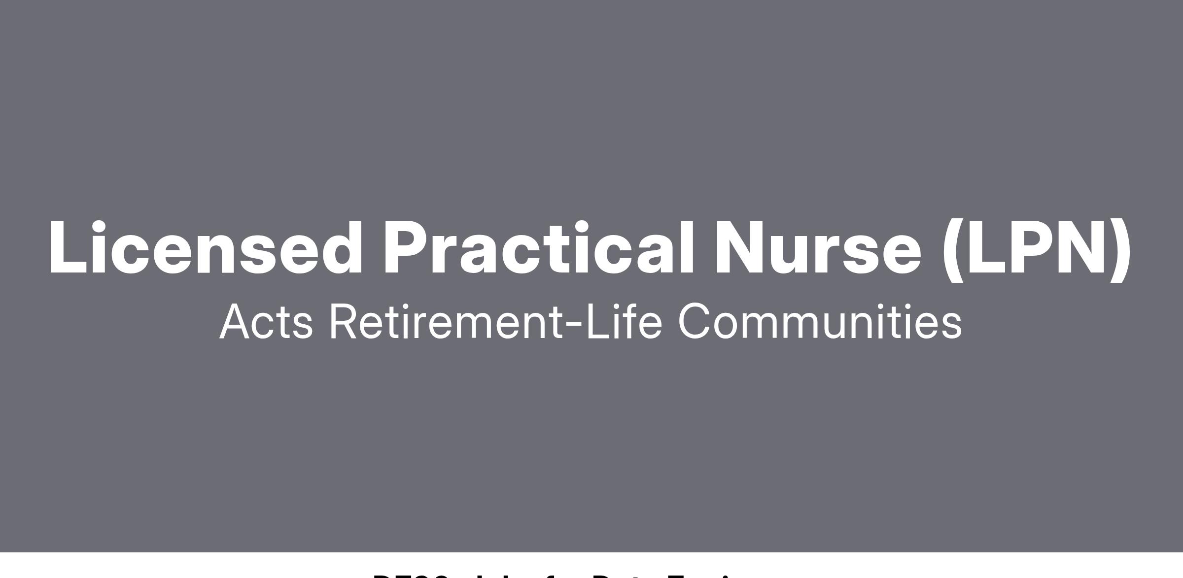 Acts is currently seeking qualified candidates for the role of Licensed Practical Nurse (LPN) in our skilled nursing neighborhood.