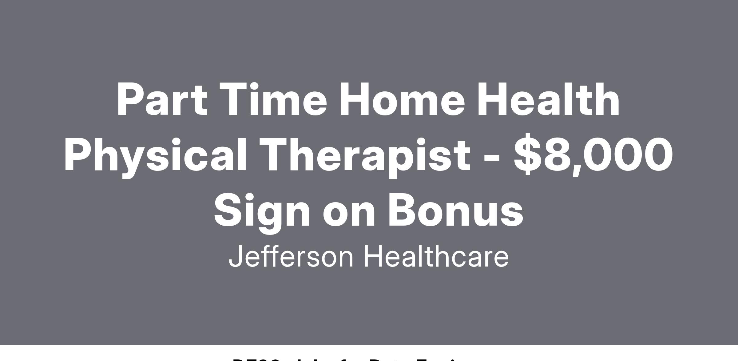 Part Time Home Health Physical Therapist - $8,000 Sign on Bonus