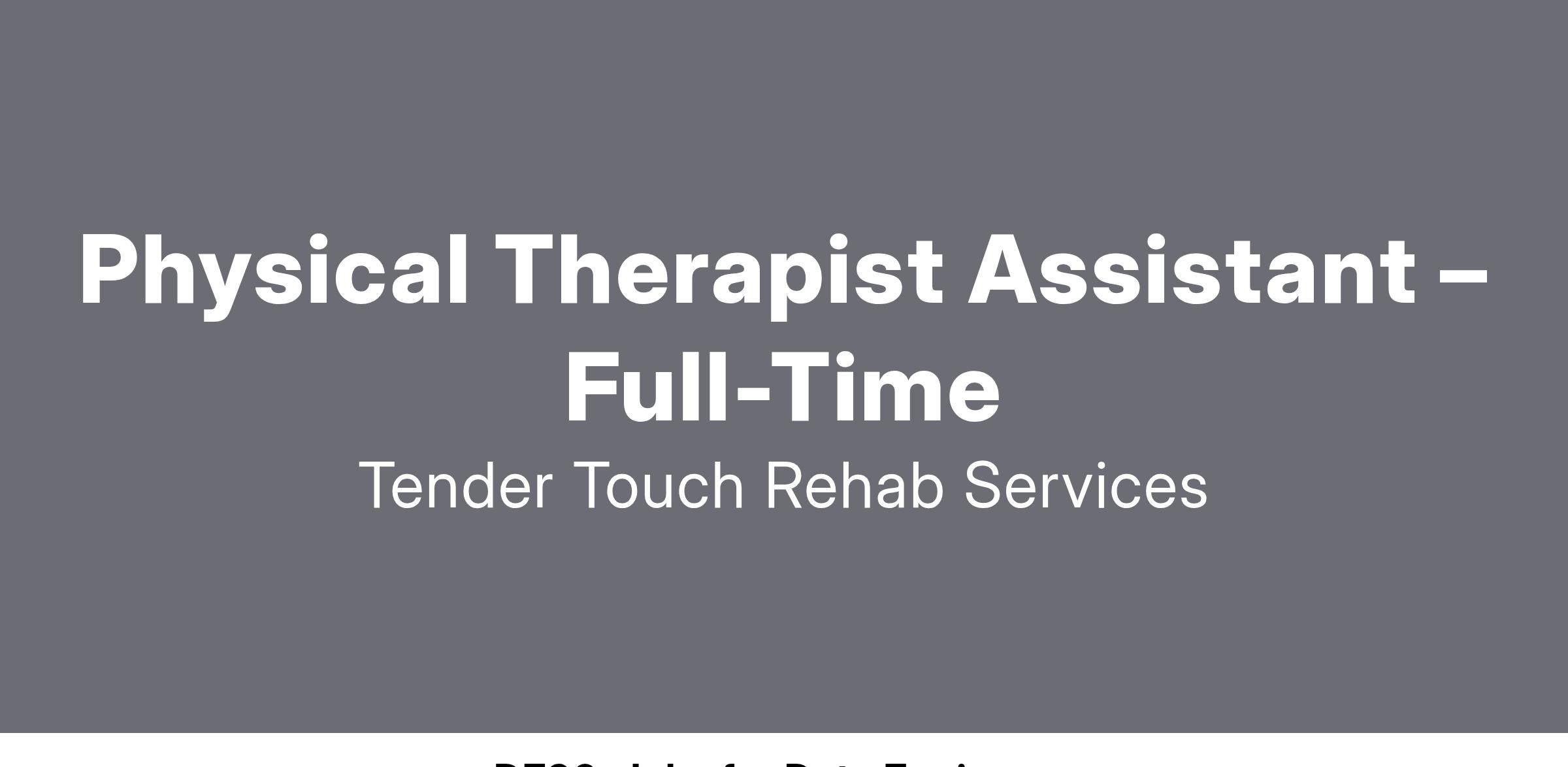 Tender Touch Rehab is hiring! We are looking for a passionate full-time Physical Therapist Assistant to join our growing team. In the same way that you are committed to quality work, we are equally dedicated to helping you grow and succeed with us.