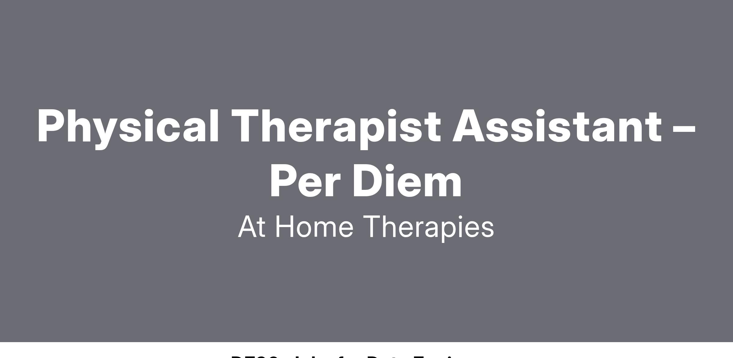 At Home is hiring! We are looking for a passionate per diem Physical Therapist Assistant to join our growing team. In the same way that you are committed to quality work, we are equally dedicated to helping you grow and succeed with us.