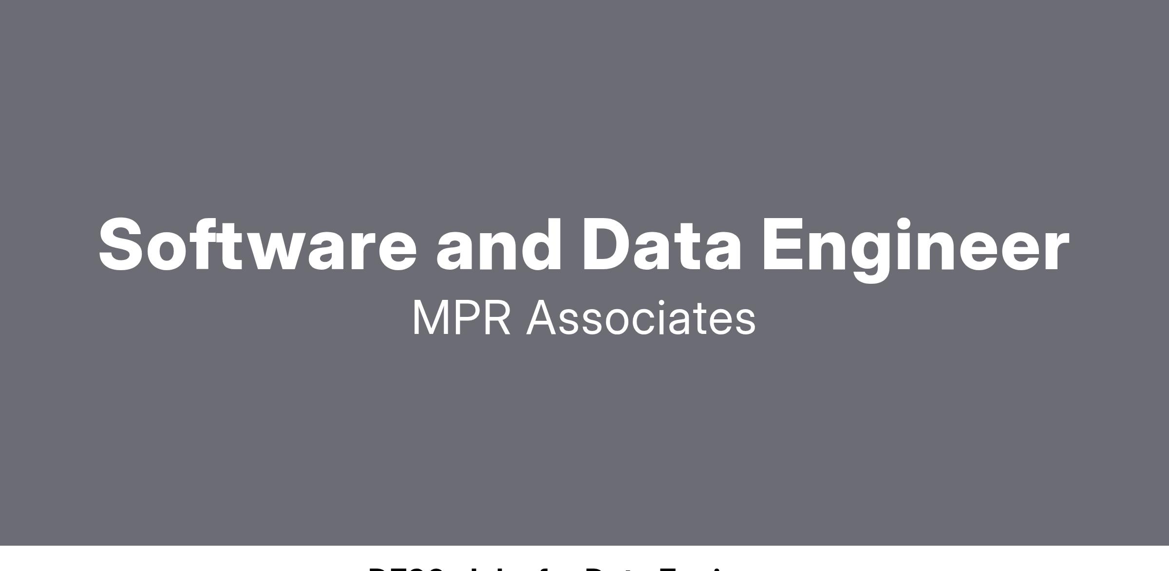 MPR Associates, Inc. (MPR), a thriving multi-discipline, specialty engineering services and consulting firm, is seeking a capable and motivated Software and Data Engineer for MPR’s Alexandria, VA office. If you are seeking a unique, challenging, and rewarding career opportunity, MPR may be the right company for you.