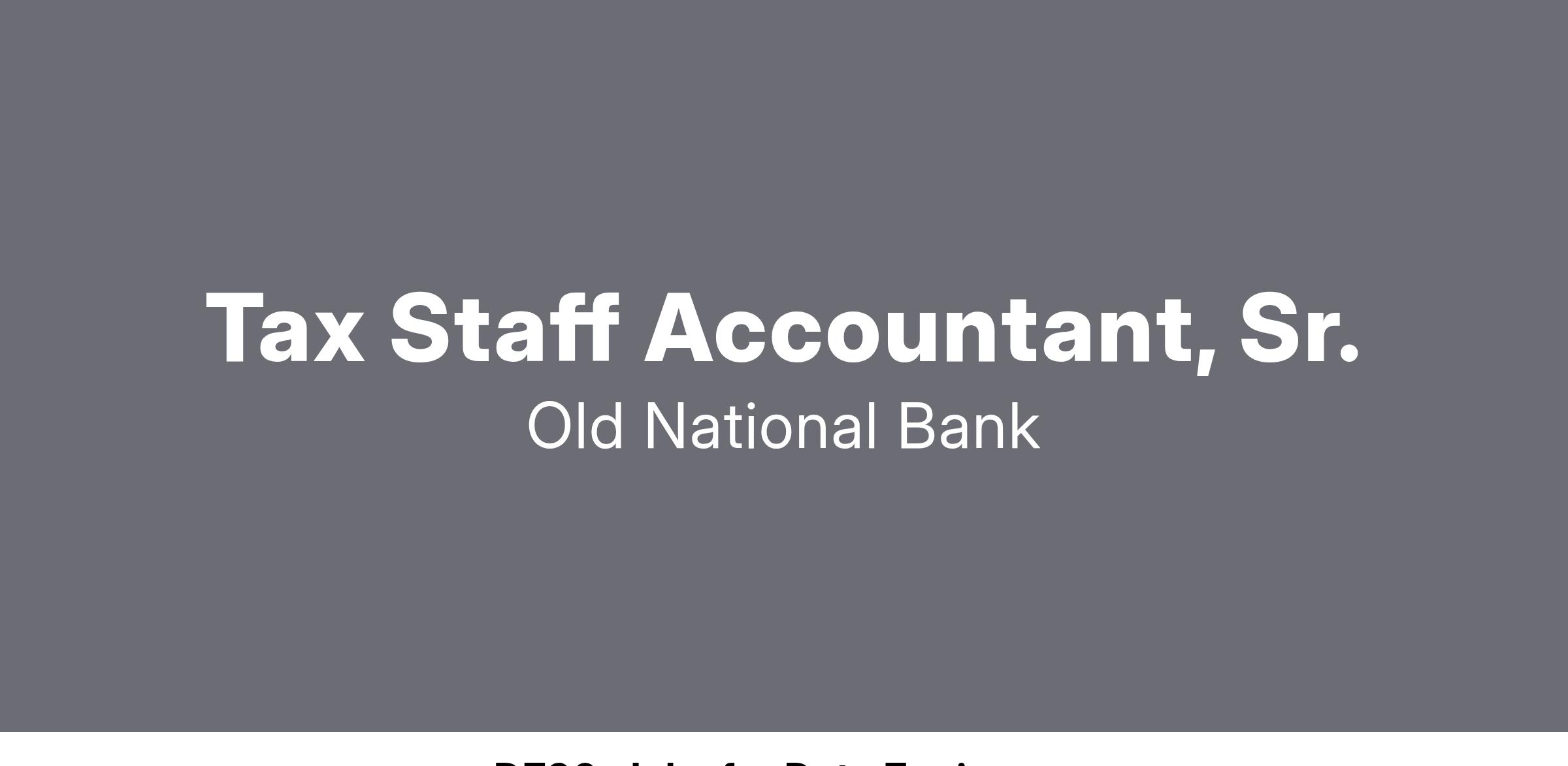 We are seeking a Tax Staff Accountant. This position will work with a team of four people, the Corporate Tax Department at Old National Bank is responsible for preparing the Company’s income tax provision, including tax footnote reporting, and preparing and filing the Company’s federal and 30+ state income tax returns. Other team responsibilities include: a) completing daily customer tax withholding deposits and returns filings; b) analyzing select purchases for use tax applicability and; c) preparing other miscellaneous filings.